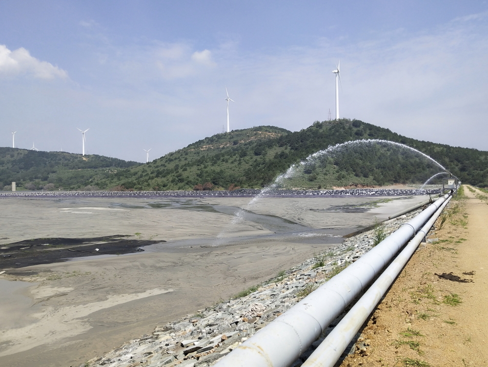 ??? 鎖龍溝貯灰場春季干旱和大風(fēng)的熱電廠加高了灰壩四級子壩,并安裝了永久性噴淋設(shè)施,定對壩內(nèi)積灰噴,保持灰面濕潤?
