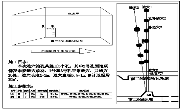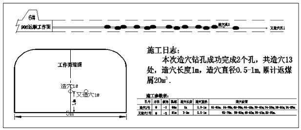 造穴鉆孔于3月31日四點班開始施工至4月1日四點班結束,施工期間大隆礦技術人員到現場指導,共成功施工造穴鉆孔2個。