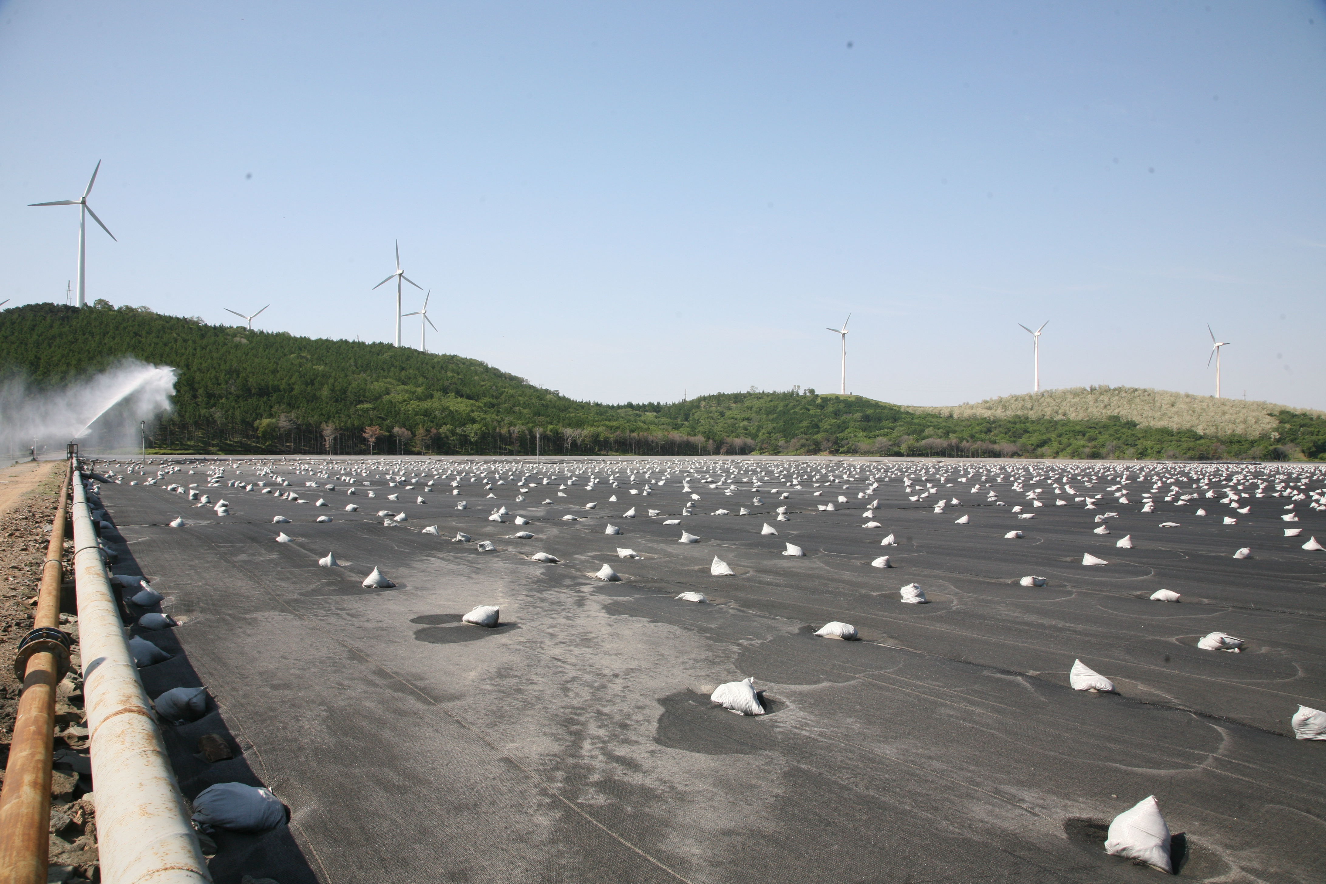 熱電廠防塵治理后的鎖龍溝貯灰場。