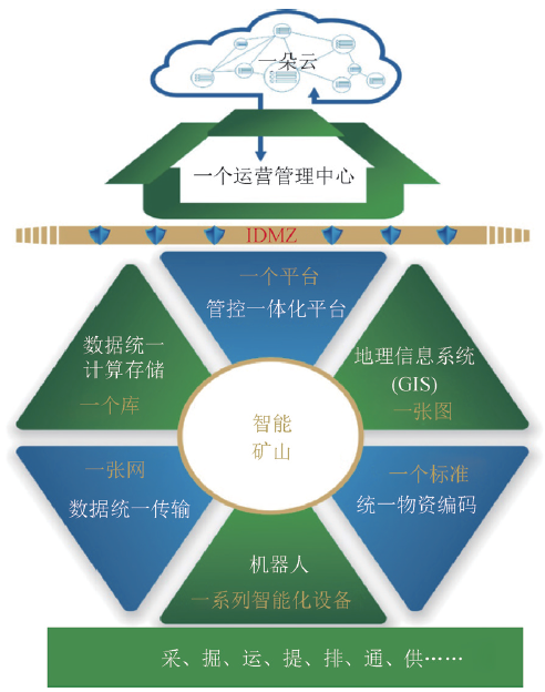 (8)“一朵云”指基于云平臺技術構建的礦山私有云或公有云,主要應用于集團管控、產(chǎn)業(yè)鏈協(xié)同、政府監(jiān)管。