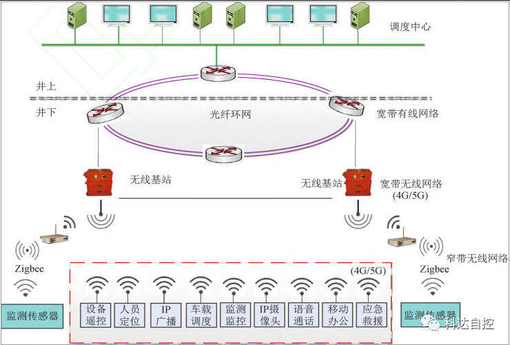 (2)“一張網(wǎng)”是融合有線寬帶與無線寬帶以及窄帶傳輸技術的礦山多源異構網(wǎng),實現(xiàn)生產(chǎn)信息全面感知與高速通信。