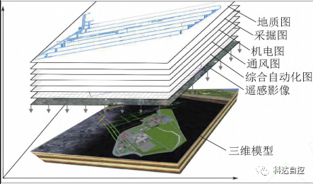 (3) “一張圖”以礦山地理信息系統(tǒng) (GIS)為基礎,為智能化子系統(tǒng)及各類應用提供精準的空間地理坐標,實現(xiàn)地質(zhì)、測量、防治水、采掘生產(chǎn)、通風以及大型設備等不同業(yè)務數(shù)據(jù)在不同圖層的分層展示。