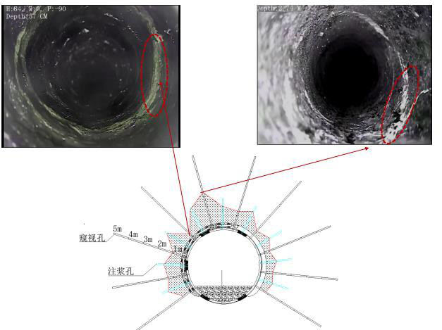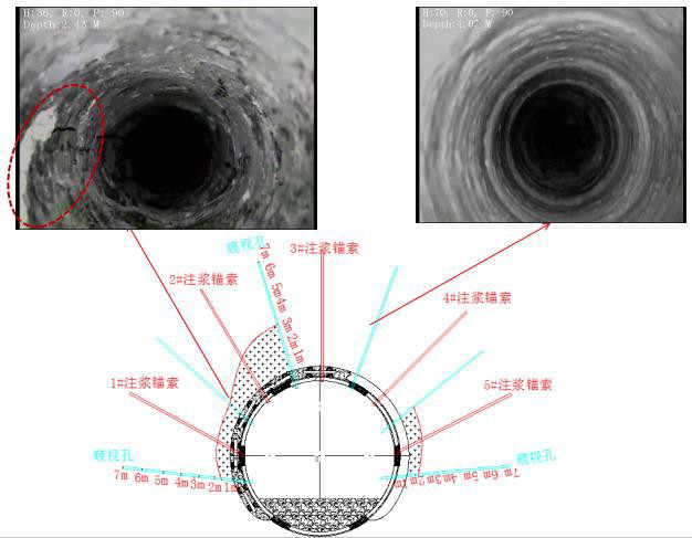 采用鉆孔窺視等方法確定了漿液的擴(kuò)散半徑和漿液的擴(kuò)散深度,再結(jié)合對(duì)圍巖力學(xué)參數(shù)、微觀結(jié)構(gòu)、成分以及變形情況等方面的測試結(jié)果,作出了注漿效果評(píng)價(jià)。