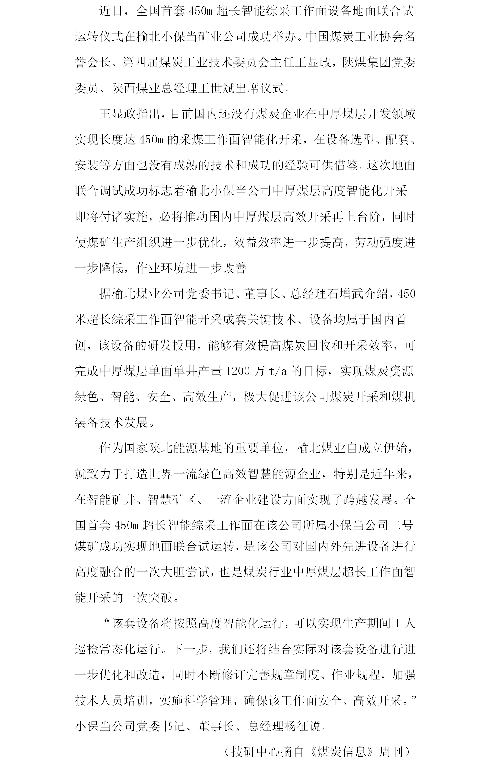 全國首套450m超長智能綜采設(shè)備成功實現(xiàn)地面聯(lián)合試運轉(zhuǎn)