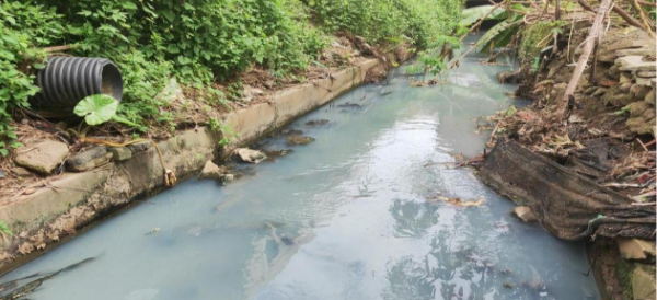圖1 ?2023年11月21日,督察組暗查發(fā)現(xiàn),黃坎溝部分河段水體黑臭,排污口污水直排