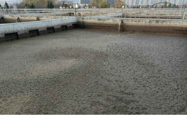 圖2 ?2023年12月2日,督察組現(xiàn)場督察發(fā)現(xiàn),天水市秦州污水處理廠運行效能低,生化池存在大量浮泥