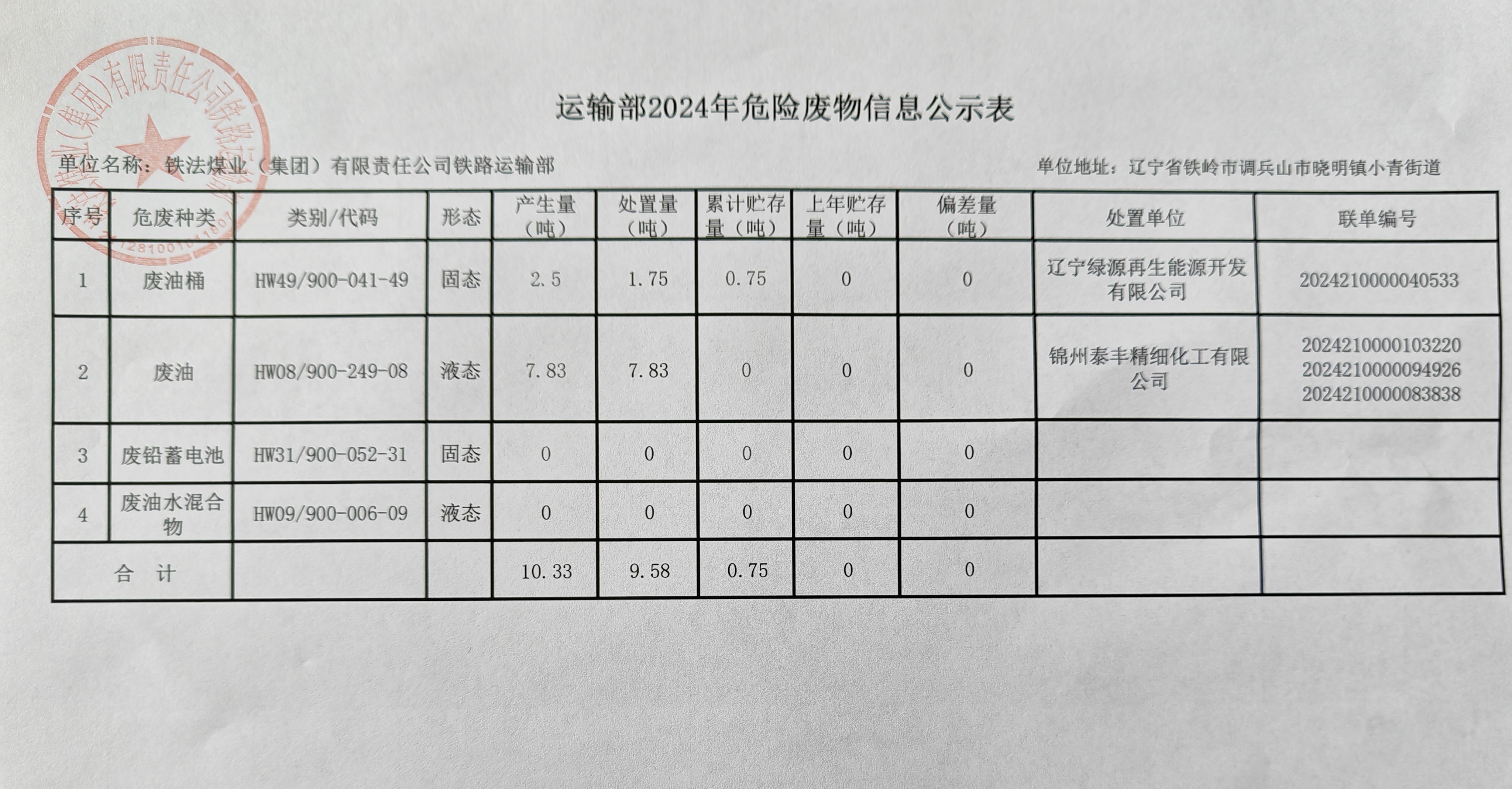 運輸部2024年度固體廢物污染環(huán)境防治信息